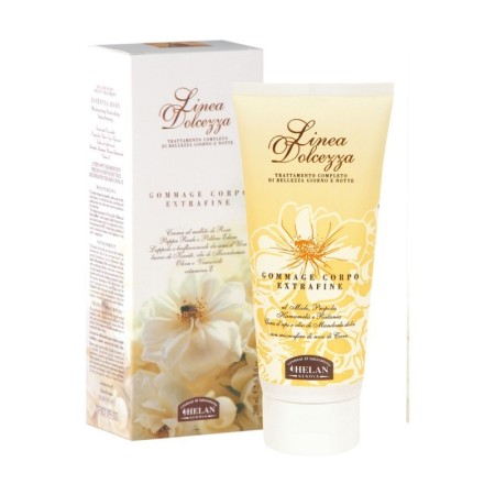 HELANLINEA DOLCEZZA GOMMAGE CORPO EXTRAFINE 200 ML è un gommage corpo extrafine HELAN della linea Dolcezza,Specificamente formulato per pelli sensibili. Grazie alla sua texture delicata e ai microgranuli esfolianti naturali, esfolia dolcemente la pelle, rimuovendo le cellule morte e le impurità, senza aggredire l'epidermide. Il risultato è una pelle incredibilmente liscia, morbida e vellutata, dall'Effetto seta. Gommage corpo extrafine per pelli sensibili - Effetto seta linea Dolcezza.